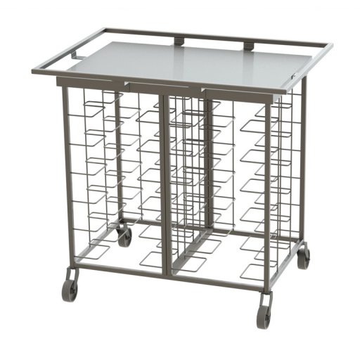 Шпилька универсальная для подносов на 12 уровней изготовлена из высококачественной нержавеющей стали и предназначена для транспортировки и хранения подносов с грязной посудой. Направляющие из прутка позволяют располагать подносы разных размеров и конфигураций. Возможно размещение подносов с размерами 300-370Х400-540мм. Шпилька оснащена столешницей. Данная шпилька устойчива к деформации за счет использования высококачественной нержавеющей стали марки AISI 430. Шпилька легко моется и чистится с использованием обычных моющих средств. 4 колеса диаметром 100 мм, 2 колеса с тормозами. Пруток диаметром 5 мм.